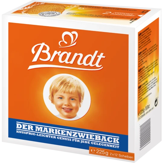 Der Brandt Markenzwieback ist der ideale Energiespender zum Frühstück, als Pausensnack oder einfach nur zwischendurch. Unser Zwieback ist durch seinen unvergleichlichen Geschmack und zarten Biss unverwechselbar seit über 100 Jahren. Unser schonendes Herstellungsverfahren gewährt diesen hohen Qualitätsstandard. Das hat bei Brandt lange Tradition und gehört zu unserer Philosophie – das Vertrauen von Generationen von Kunden bestätigt uns dies Tag für Tag.