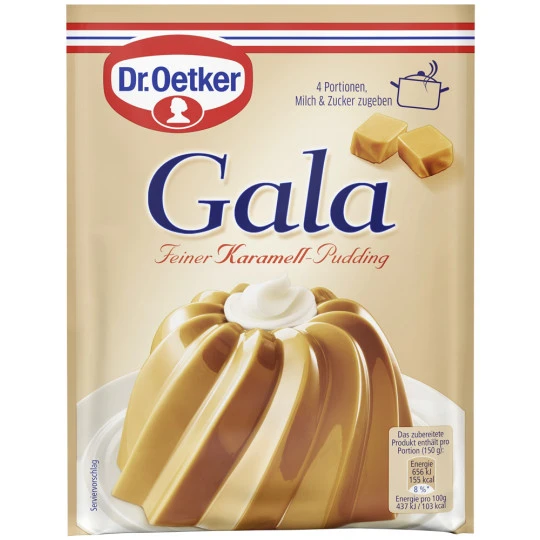 Tip: Pudding und Dr.Oetker Dessertsoße Vanille-Geschmack nach Packungsanleitung kochen, beides kalt stellen. Pudding mit der Soße servieren und nach Wunsch mit Haselnußkrokant garnieren.